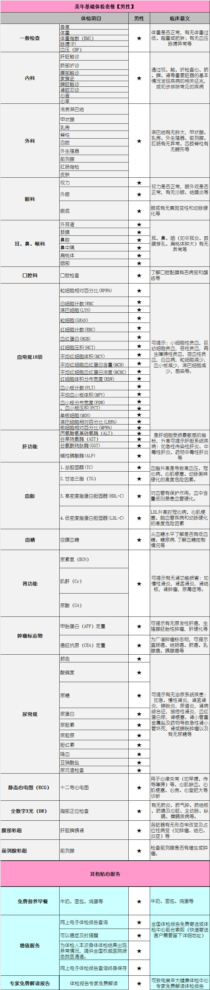 美年基础体检套餐【男性】